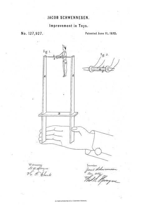 Schwennesen, J. (1872). Improvement in Toys. Patent No. 127927. Retrieved March 15, 2017, from https://docs.google.com/viewer?url=patentimages.storage.googleapis.com/pdfs/US127927.pdf